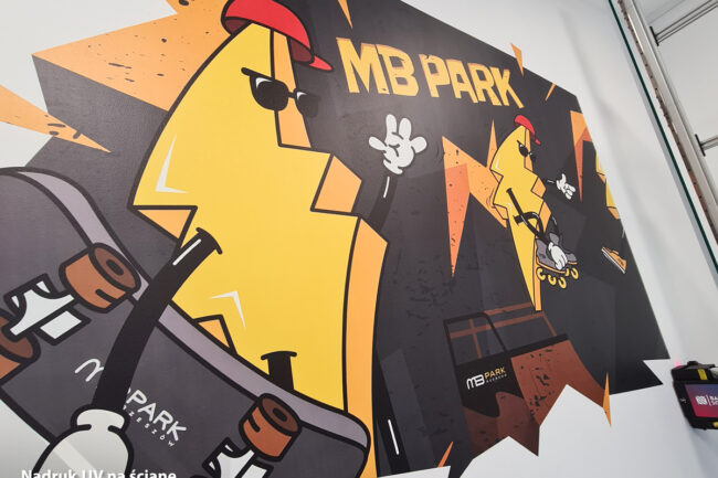 Projekt dla MB-Park jest przykładem, jak druk bezpośredni może całkowicie odmienić przestrzeń użytkową – nadając jej indywidualny charakter, nie rezygnując przy tym z trwałości ani precyzji wykonania.